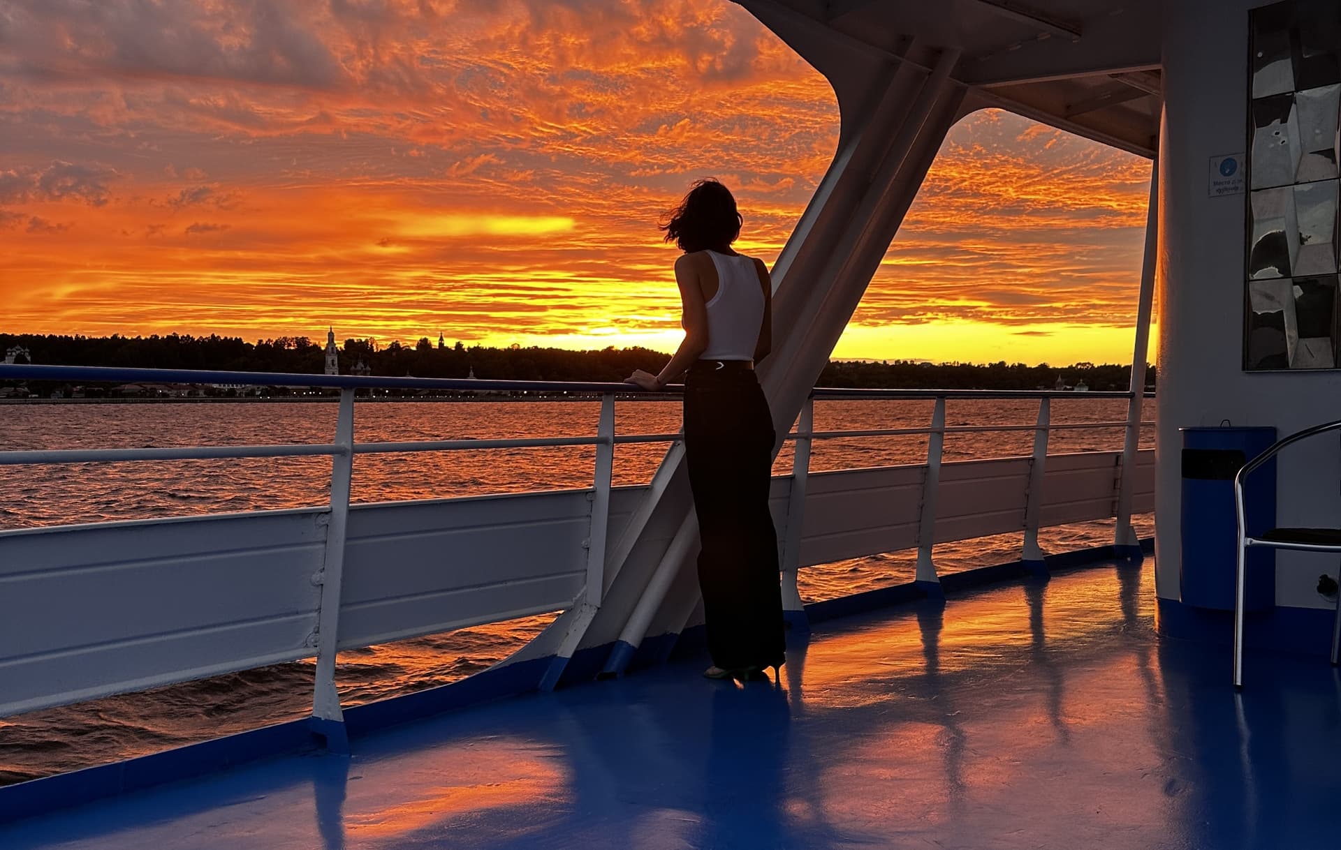 Обратите внимание, что на реке всегда прохладно, особенно в вечерние и ночные часы. Даже если вы отправляетесь в круиз в самые жаркие месяцы лета, не забудьте о теплой одежде: куртка, свитер, кардиган никогда не будут лишними. Кроме того, все мы знаем, как изменчива порой бывает погода.
