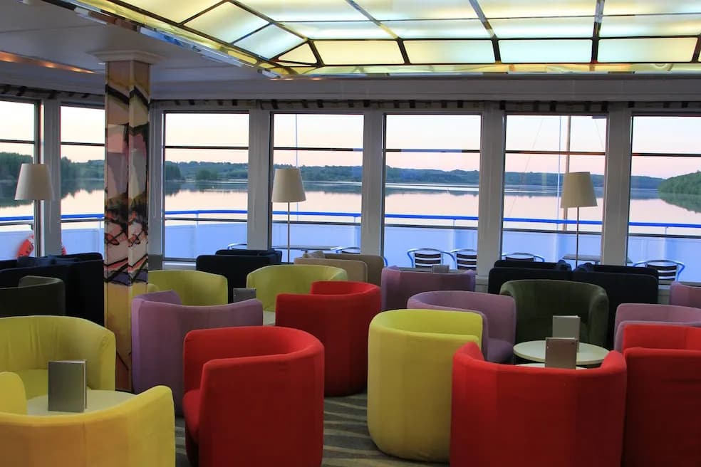 Особенность главной палубы заключается в том, что по ней нельзя гулять, она используется экипажем в служебных целях. В этом есть плюс — можно спокойно любоваться из окна своей каюты речными пейзажами.