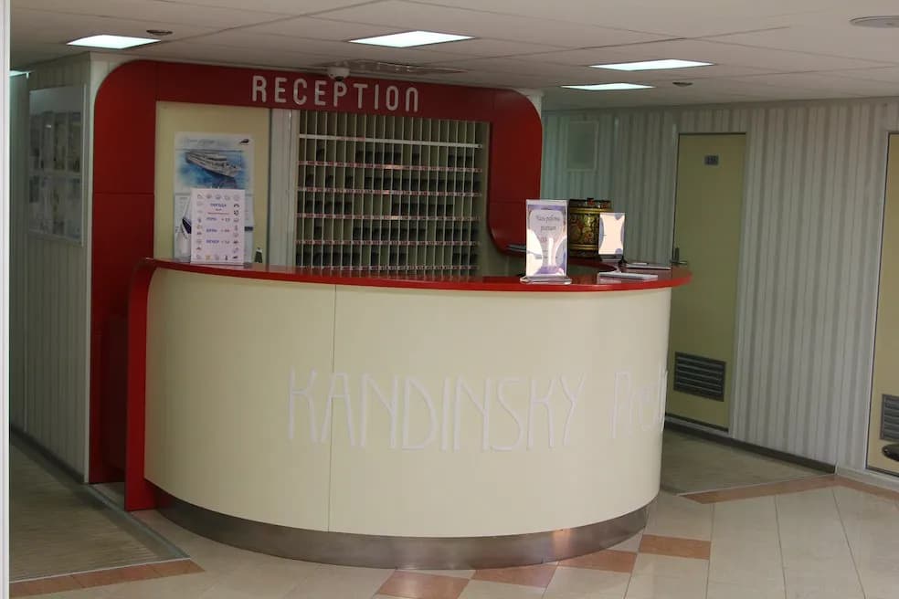 Первый шаг пассажир делает на главную палубу, именно она соединяется трапом с причалом. Здесь находится стойка регистрации и главный холл теплохода.