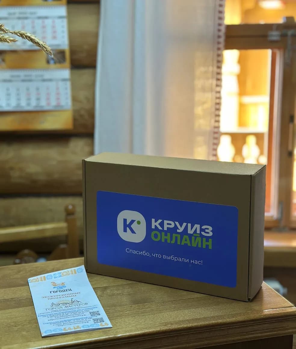 Каждый турист на борту, забронировавший путешествие через сервис Круиз.онлайн, получил в подарок фирменный бокс с памятной открыткой в честь старта навигации и брендированным шоппером, футболкой или бейсболкой.