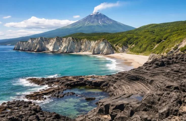 Остров Итуруп — это сочетание мощных вулканов, спокойных озёр, горячих источников и суровой океанской красоты. Белые скалы, плато Янкито, вулкан Баранского и озеро Лебединое формируют уникальный образ острова, который невозможно спутать ни с одним другим местом России.